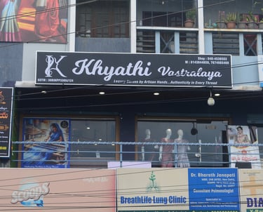 Khyathi Vastralaya has an exquisite collection of sarees. The quality, craftsmanship and vibrant designs are unmatched. Shopping here was a delightful experience and the staff made it truly special and helpful.